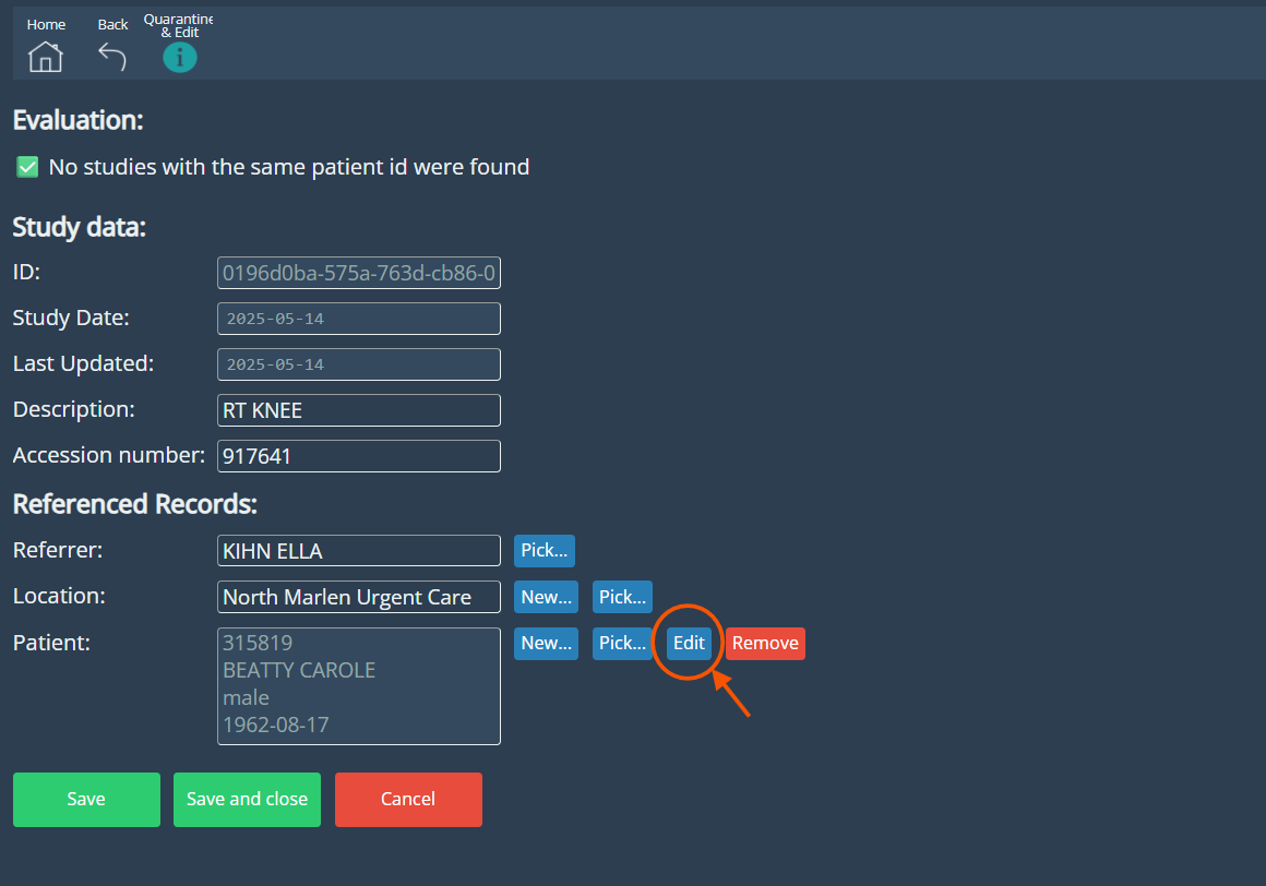 - Save required before editing patient information: Currently, in the Edit Study page, any changes made study fields must be saved before opening the Edit Patient form. This is being reviewed for resolution in a future update.