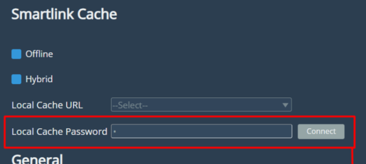 The password field previously required to connect to the Local Cache from Platform has been removed. This change was made possible by recent SL5 updates, which enable direct access using an improved authentication method, eliminating the need for manual password entry.