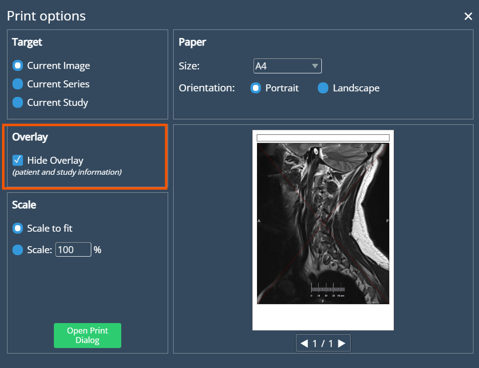 A new checkbox has been added to Quick Print settings, allowing users to hide overlay text when printing. This gives users control over the amount of detail shown in printed outputs.