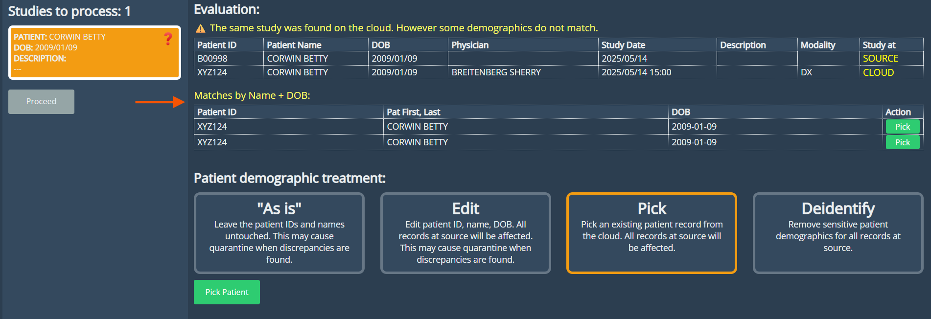 Enhanced Patient Matching in Upload DICOM