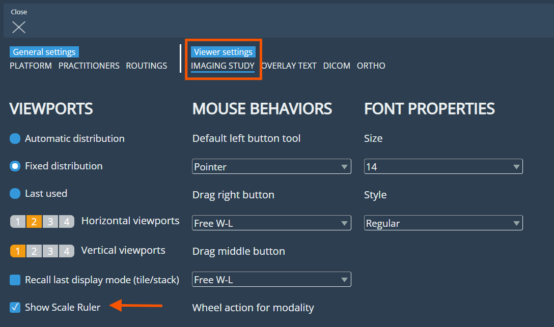 Users can now enable a scale ruler from the Imaging Study settings to display it at the bottom of the viewport, offering a clear visual guide for accurate image measurements.